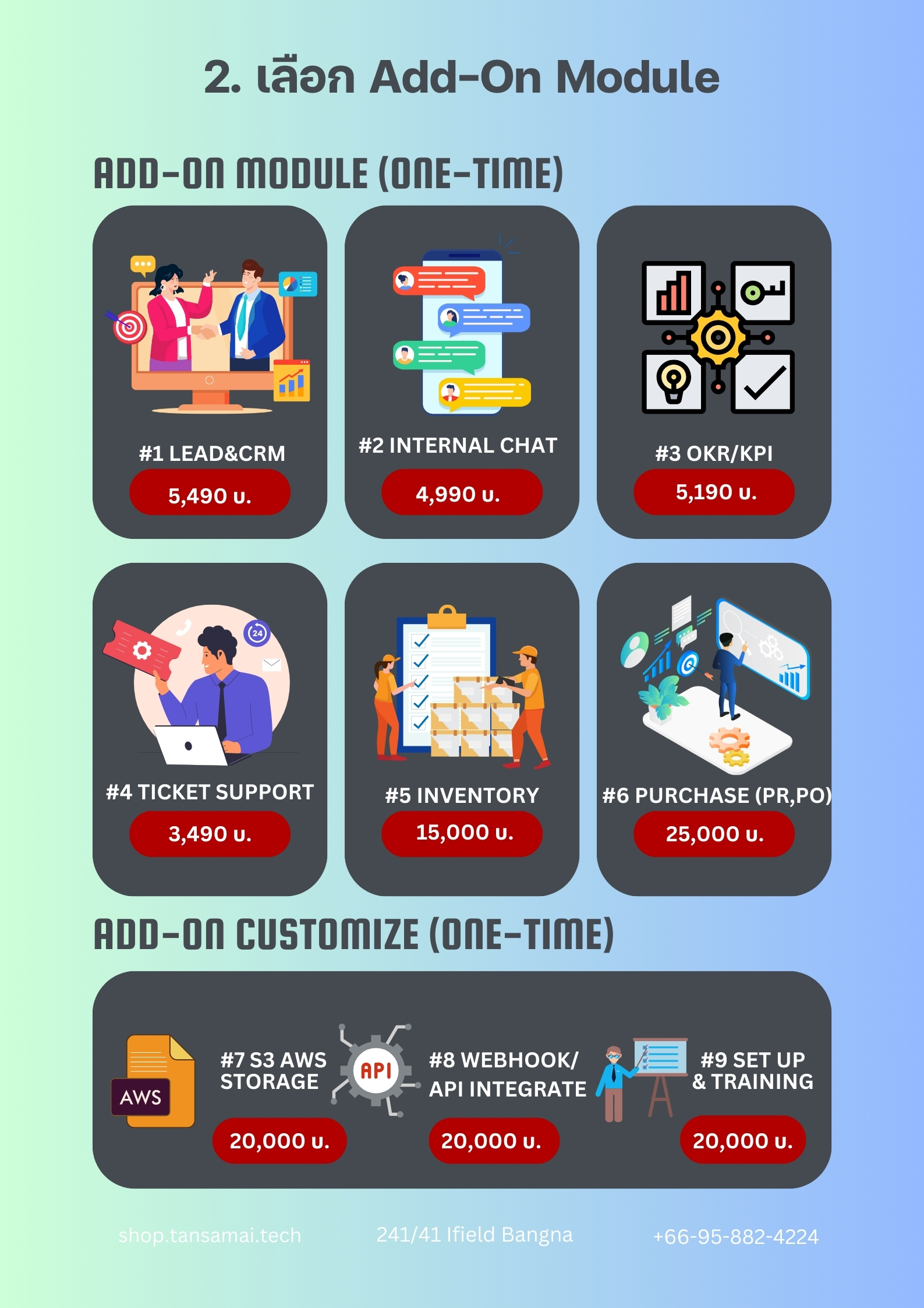 Inbox สอบถามข้อมูลทาง Facebook หรือ Line : @tansamaigroup คลิก